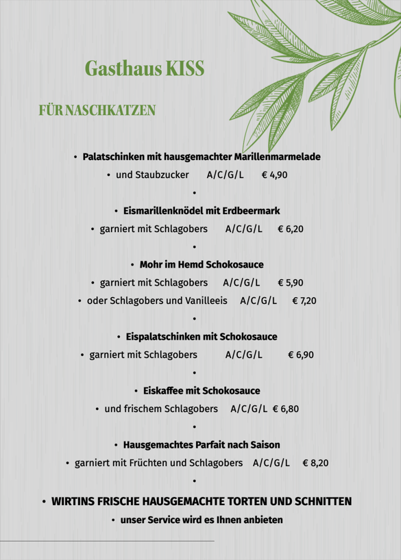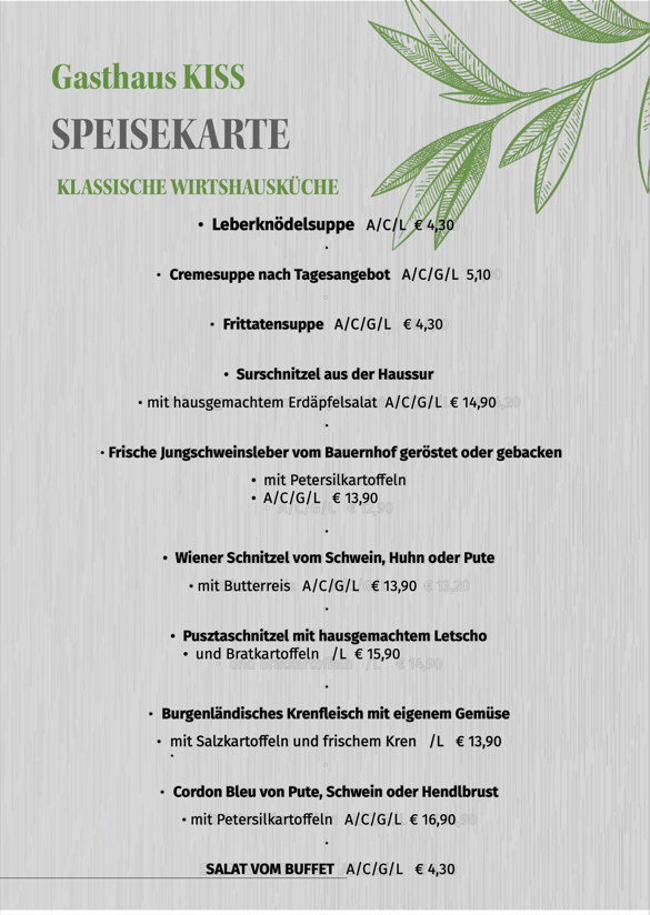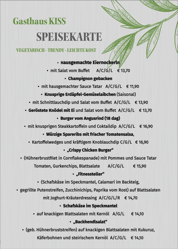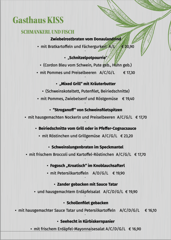 Wir servieren Ihnen heimische Produkte in Frische und Güte zu einem vernünftigen Preis. Wählen Sie aus unser umfangreichen Karte